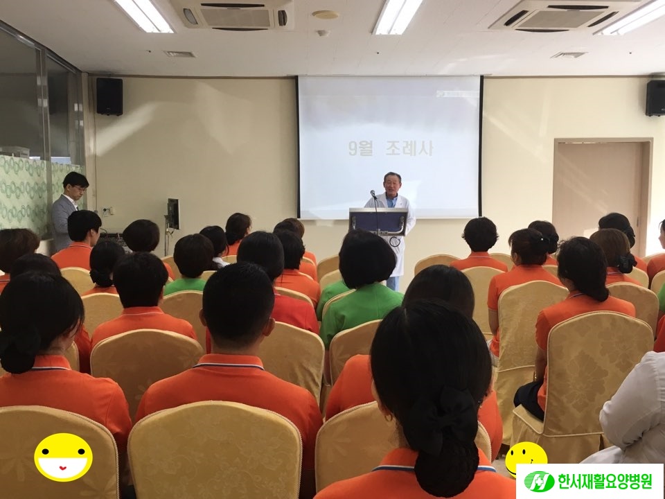 9월 월례 조회를 김홍양 원장님의 말씀과 박창영 과장님 말씀을 시작으로 개최되었습니다.