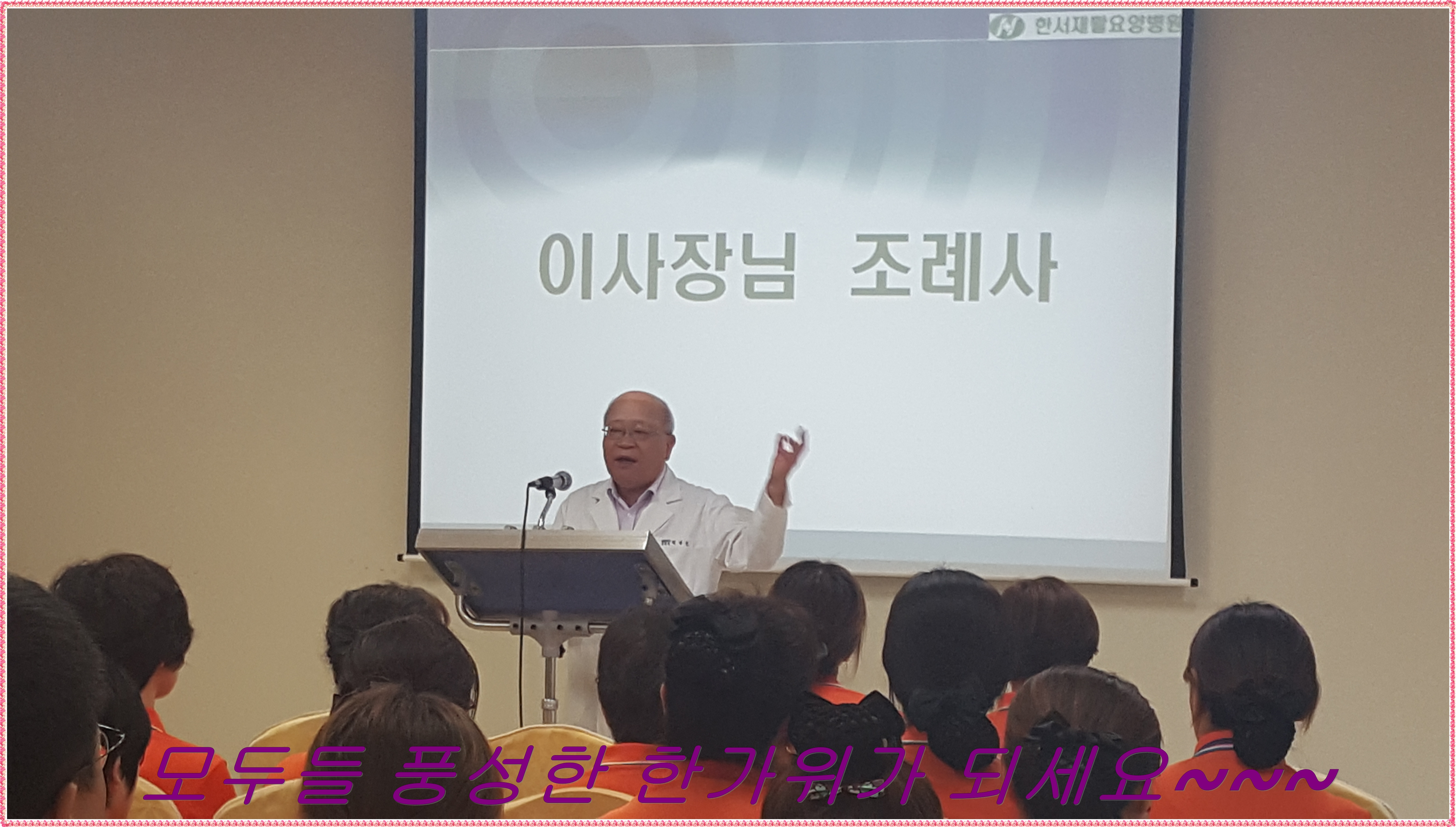 본인의 건강은 1번이 아니라 0번이라는 말씀은 저희 한서 가족에 대한 애정이 그대로 전해집니다. 고맙습니다.