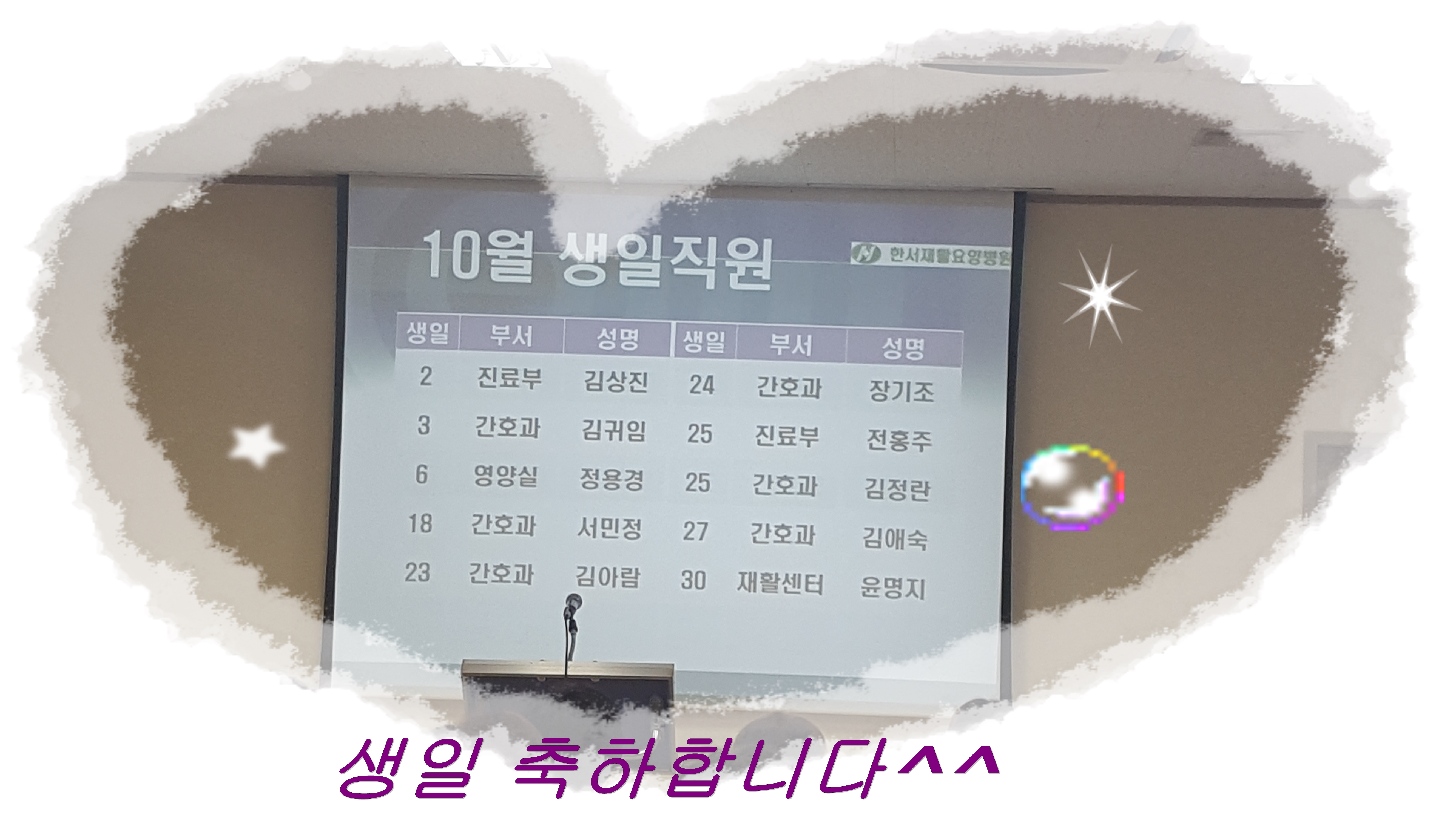 보호자들께서 반입하시는 음식물에도 신경쓰라는 말씀과 함께 직원분들께서도 즐거운 연휴가 되라고 이야기 해주셨어요^^