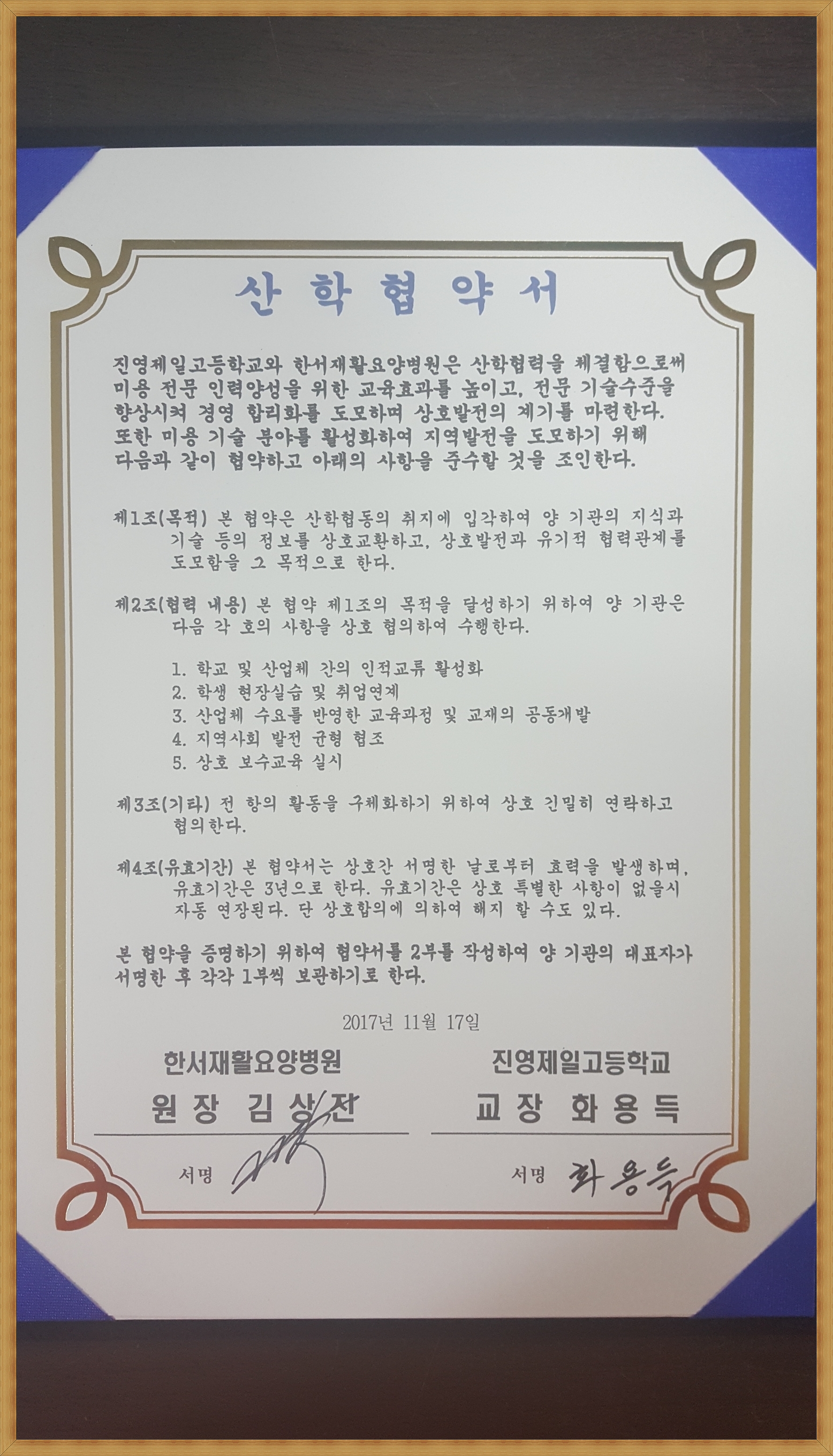 진영제일고 산학 협약서 체결