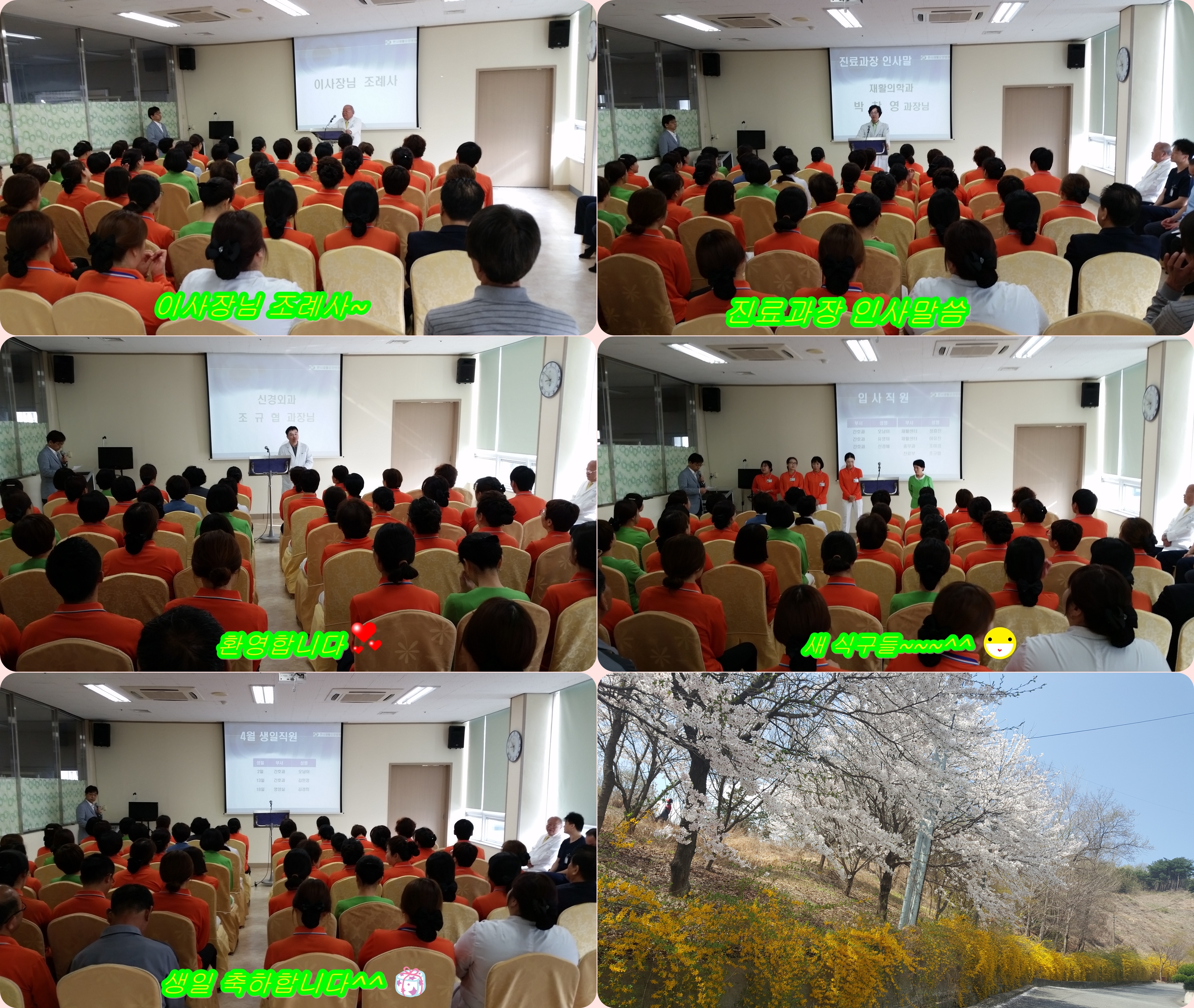 미세먼지와 황사에 봄건강에 유의하라는 이사장님과 진료과장님의 말씀.