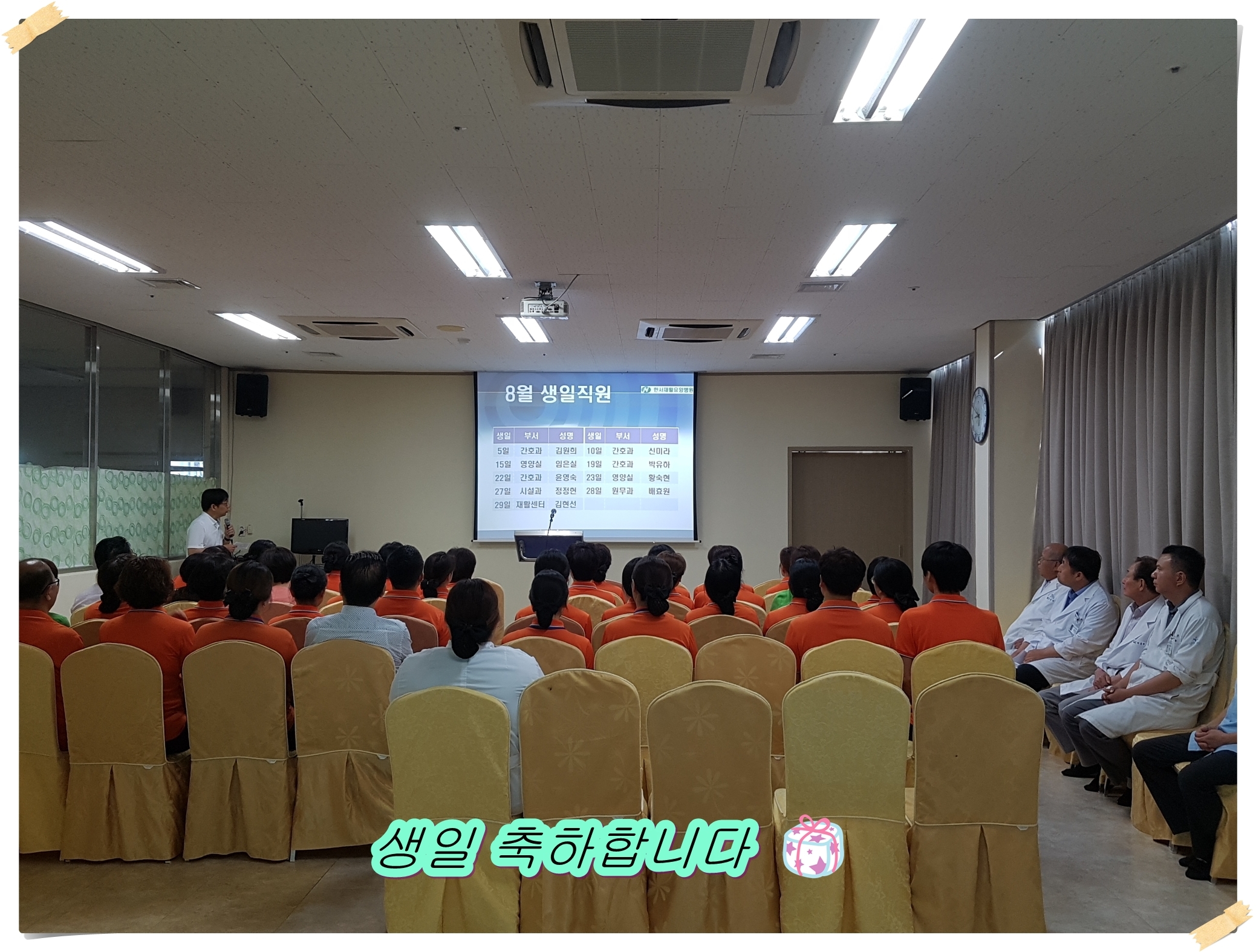 더위로 인한 건강관리에도 유의하라고 이야기 해 주시는 이사장님의 말씀이 있었습니다.