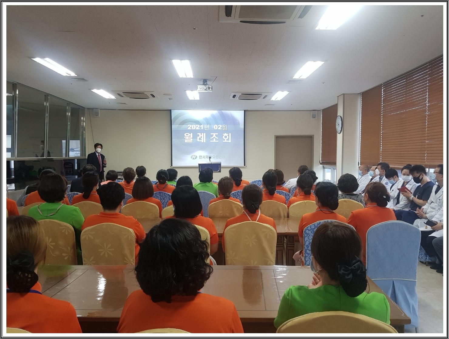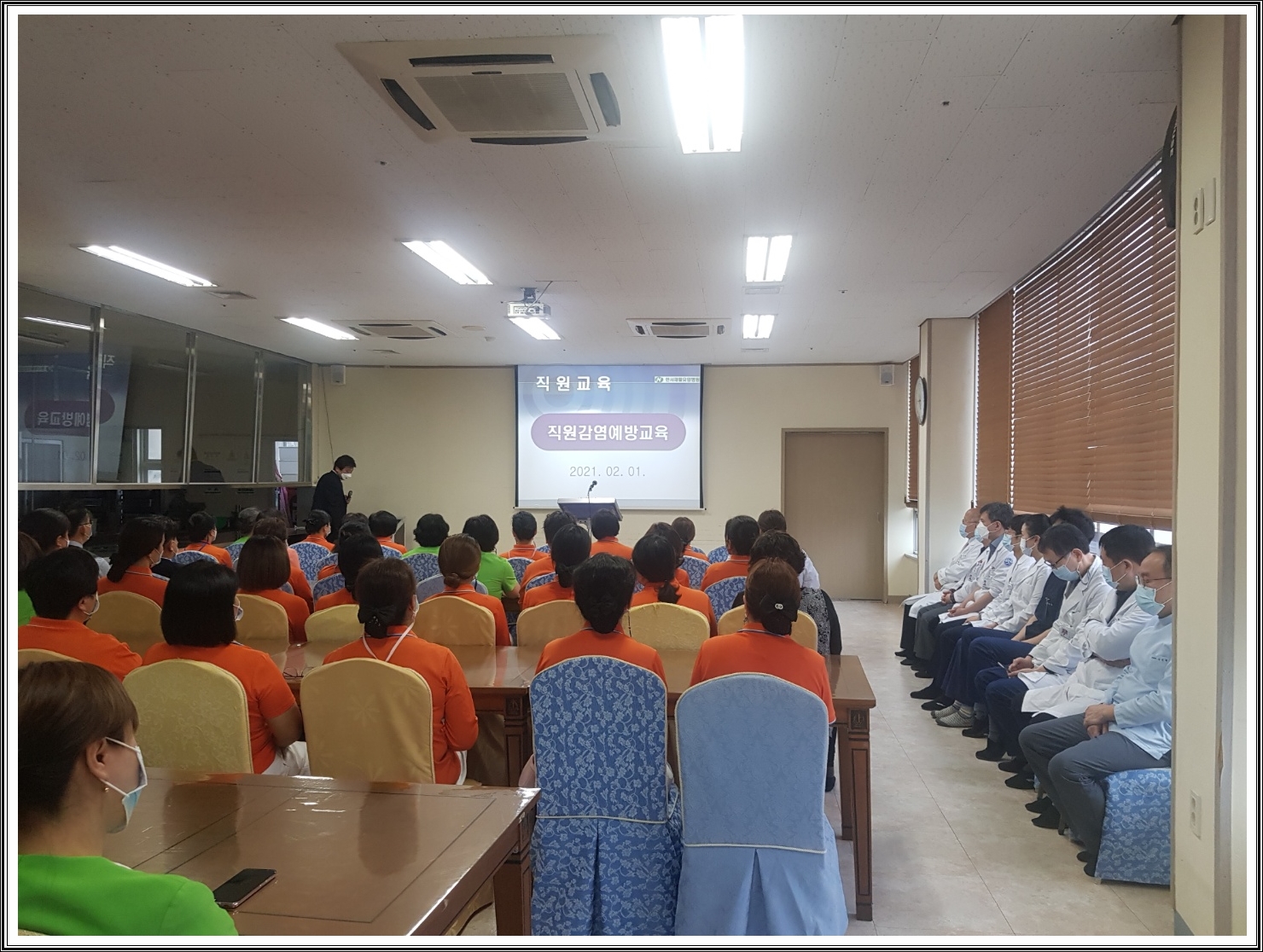 월례조회와 함께 직원 감염 예방교육도 같이 실시되었습니다.