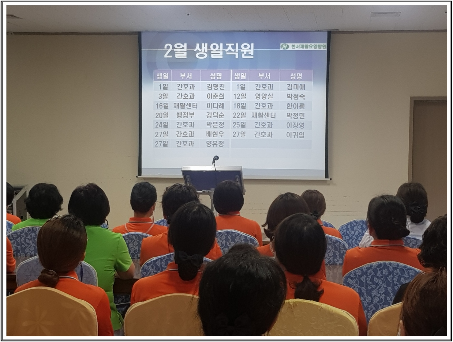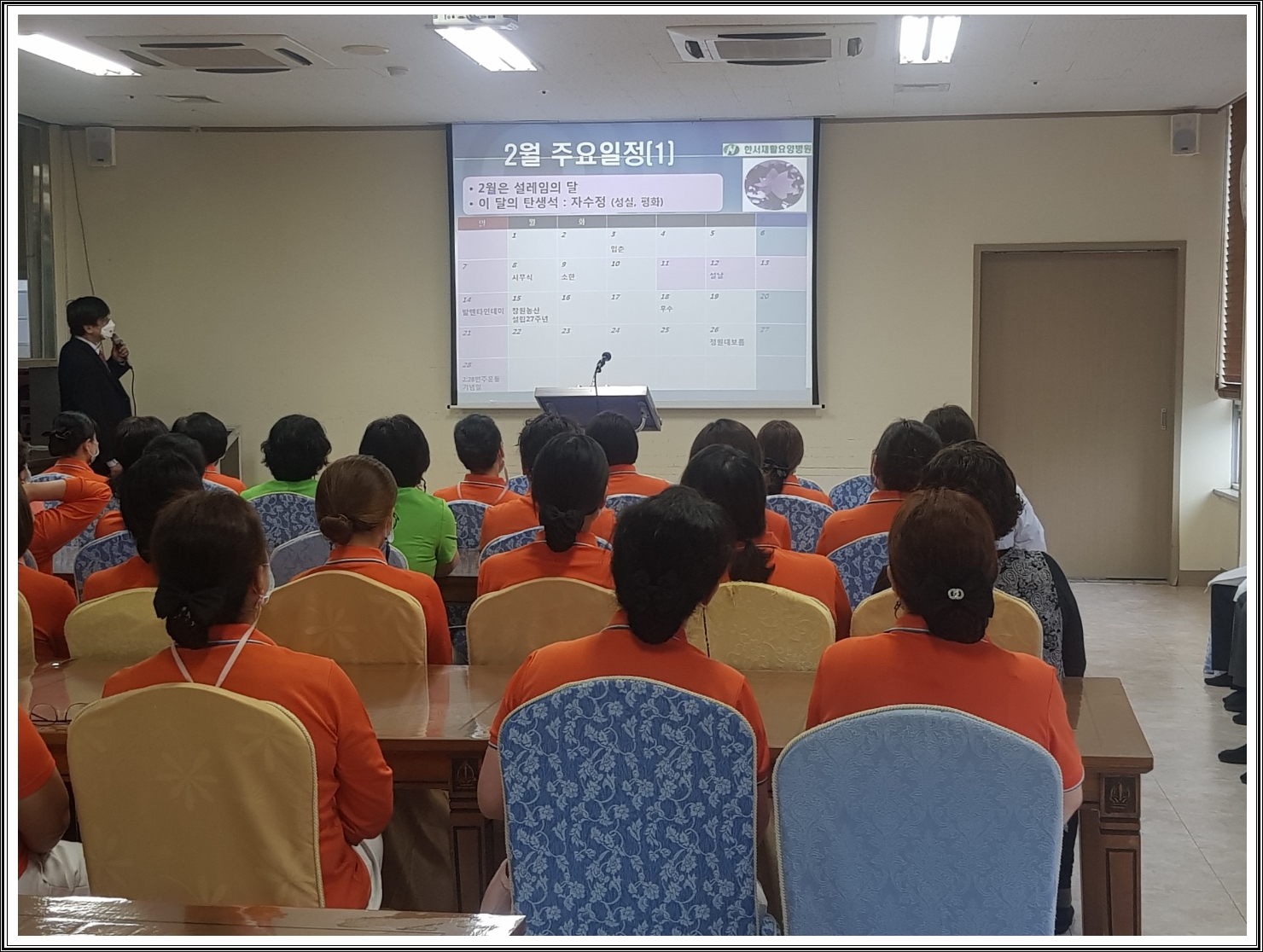 오늘은 한서인들의 2월 월례조회가 있는 날입니다.