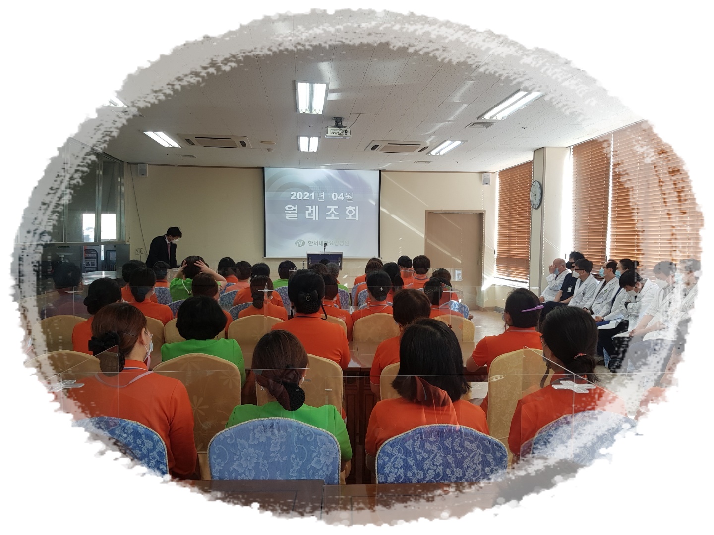 오늘은 한서인들의 4월 월례조회가 있는 날입니다.