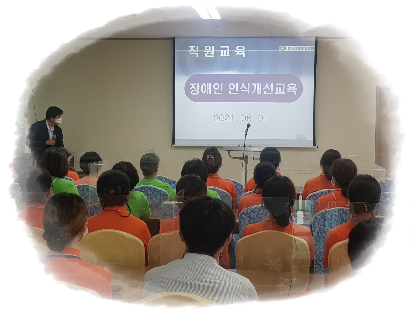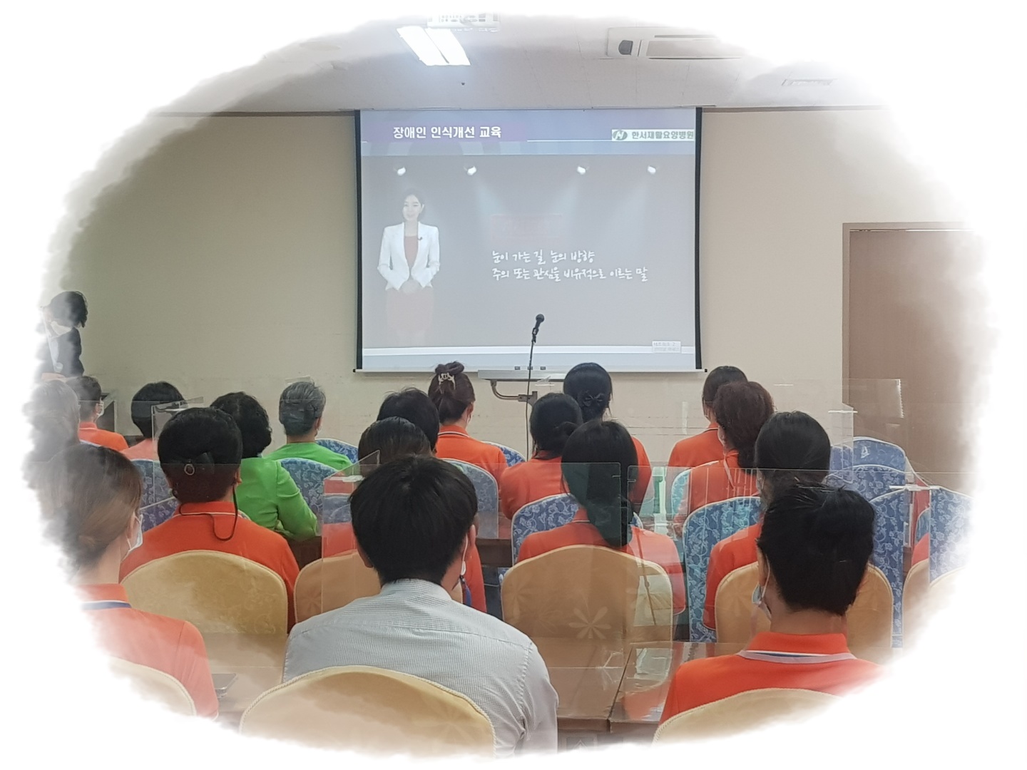 월례조회와 함께 장애인 인식개선 교육도 같이 실시하였습니다.