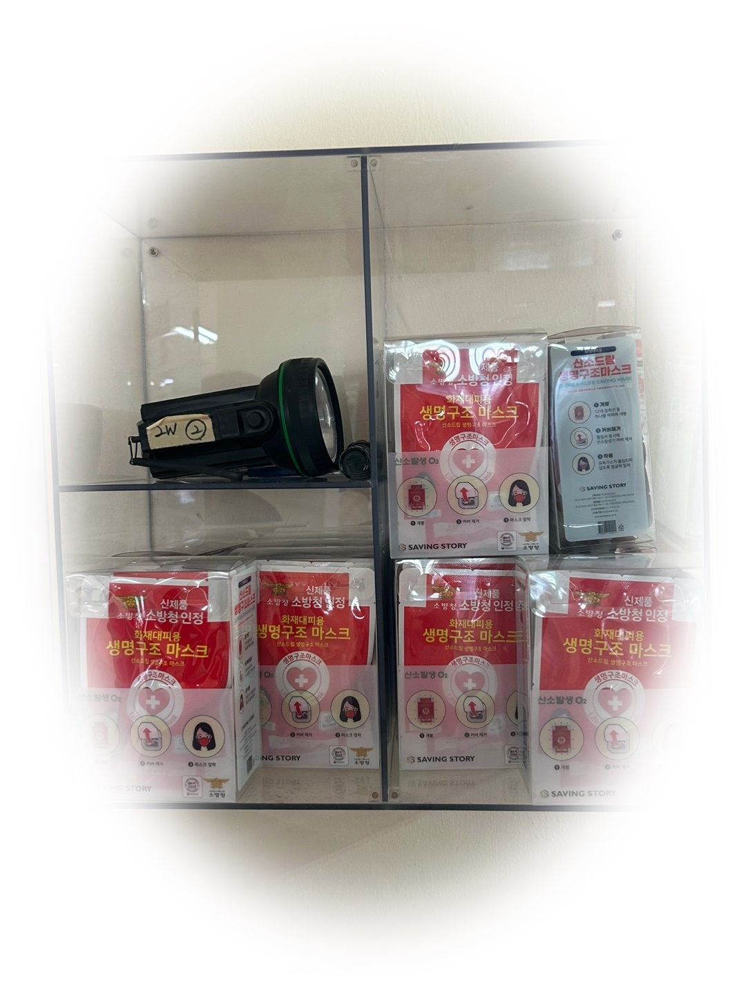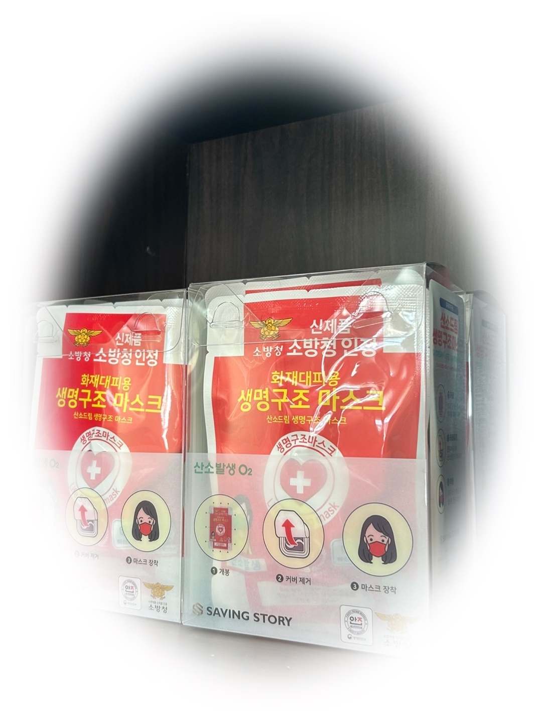 생명구조 마스크와 방연손수건를 보급 해 주셨습니다.