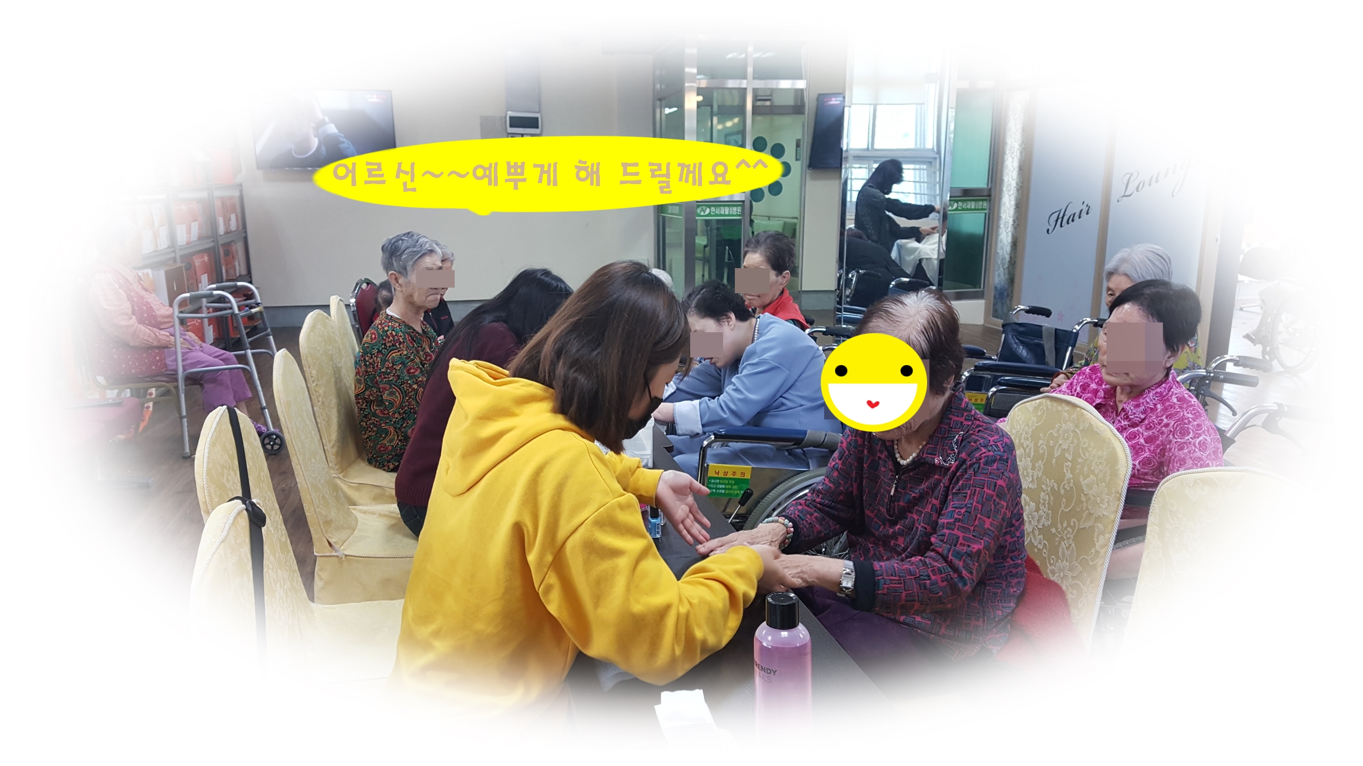머리도 단장해 보시고~~오늘 우리 할머님들~~네일 아트까지~~