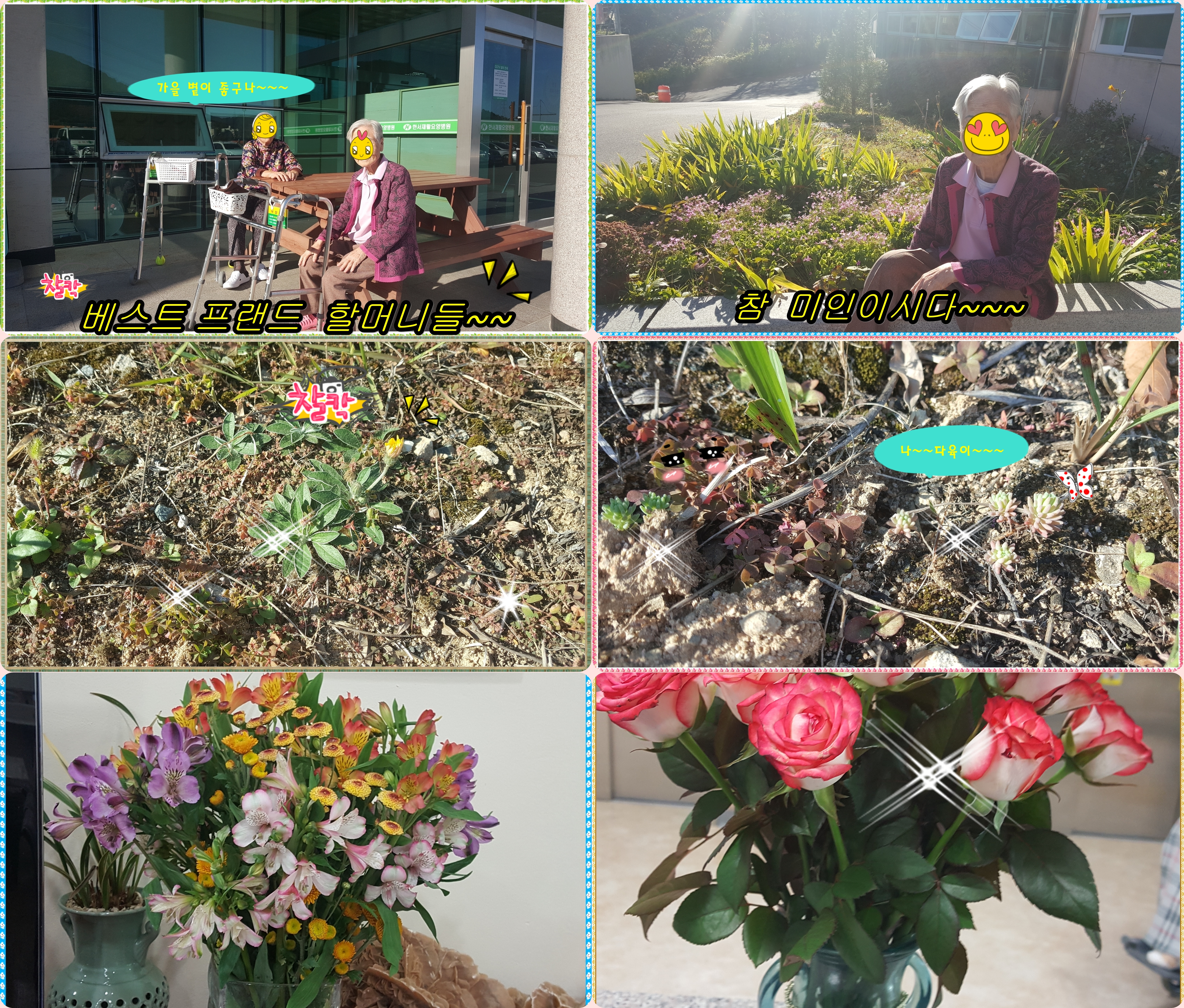 병원 앞에서 담소를 나누시다 우정의 사진을 한번 촬영해 달라고 이야기하시는 우리 할머니들~~