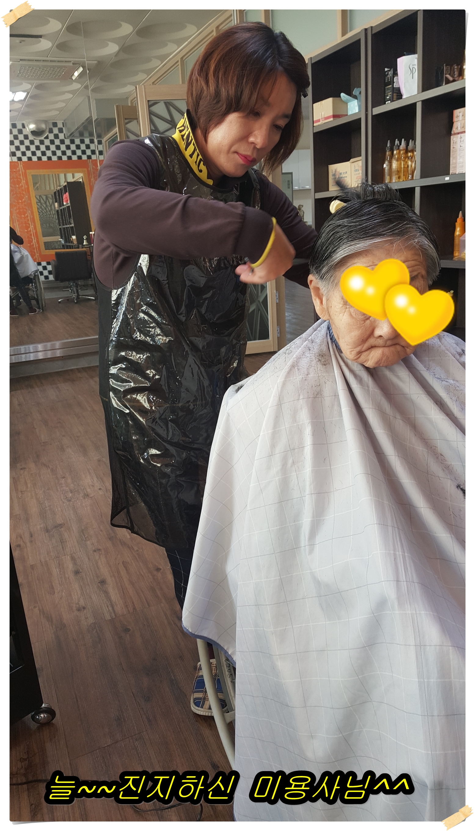"딱 내 스타일대로 머리 해 주드라~~~"하시며,도착 30분 전부터 봉사자 분들을 기다리는 할머님부터