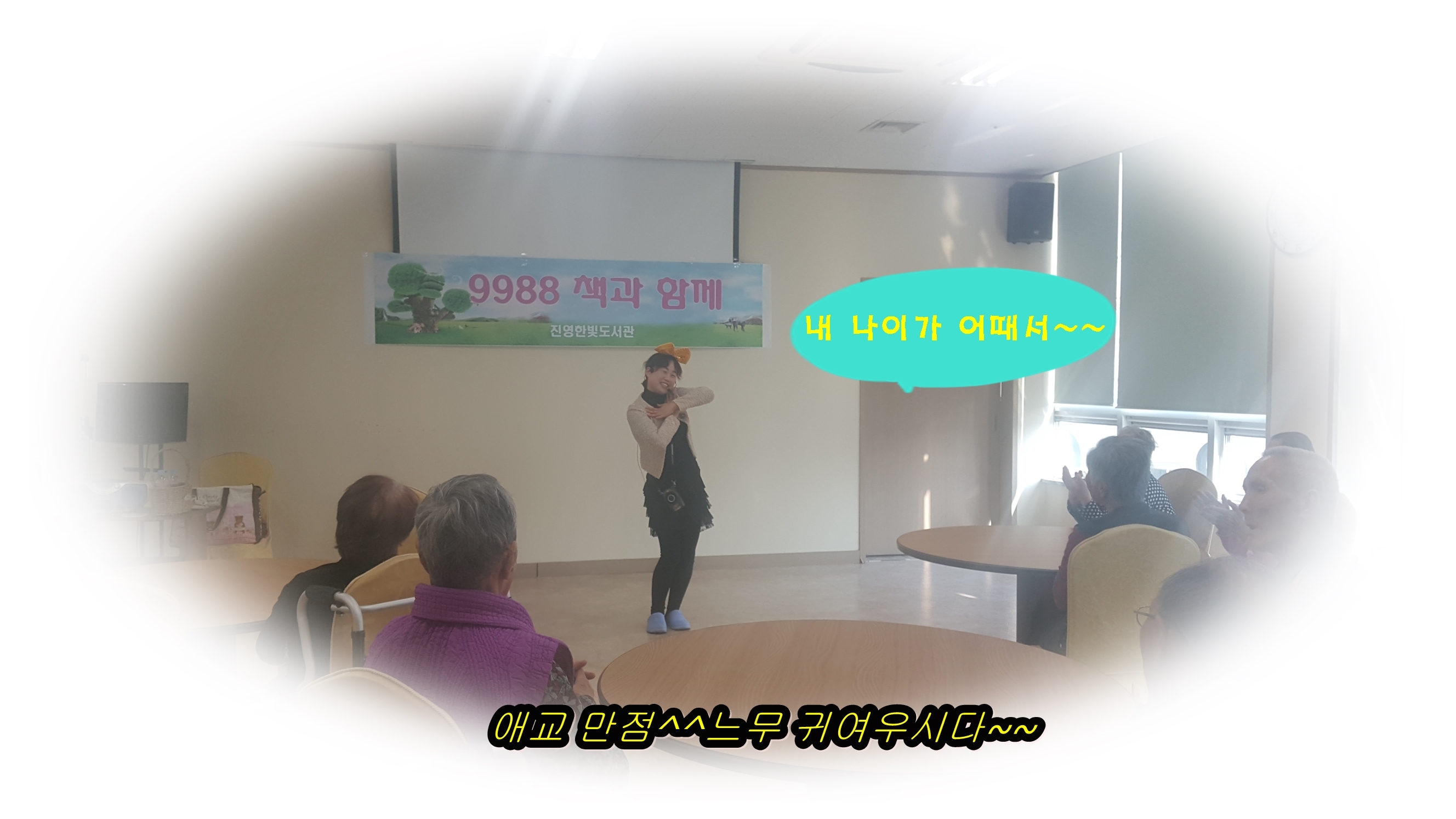 신나는 음악에 맞추어 율동까지 한 후에도 자리를 뜨시지 않으시는 모습에