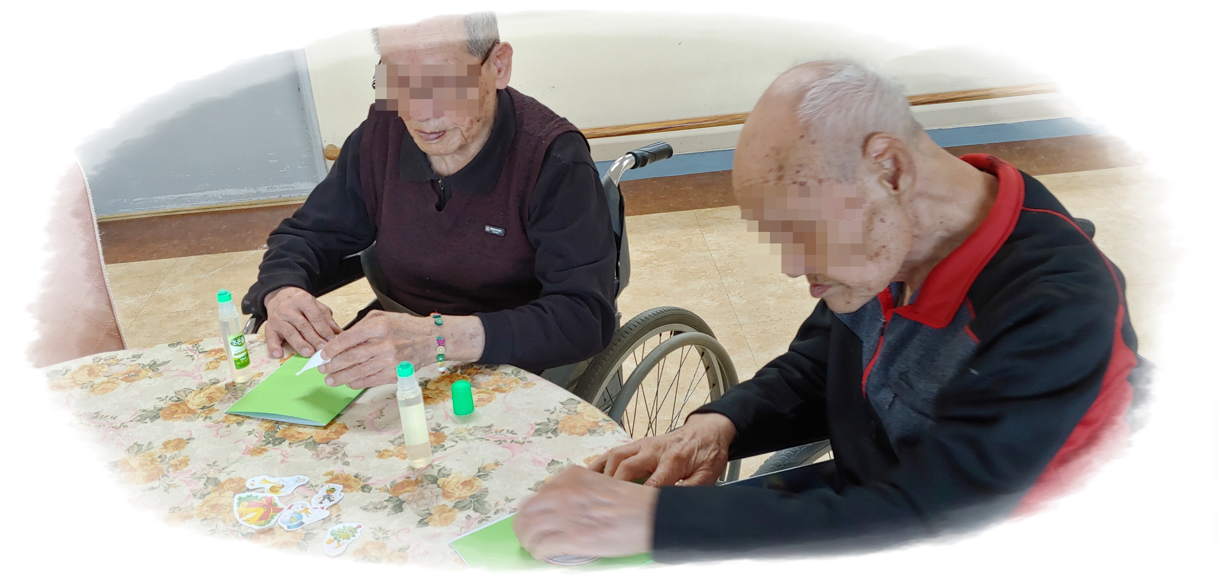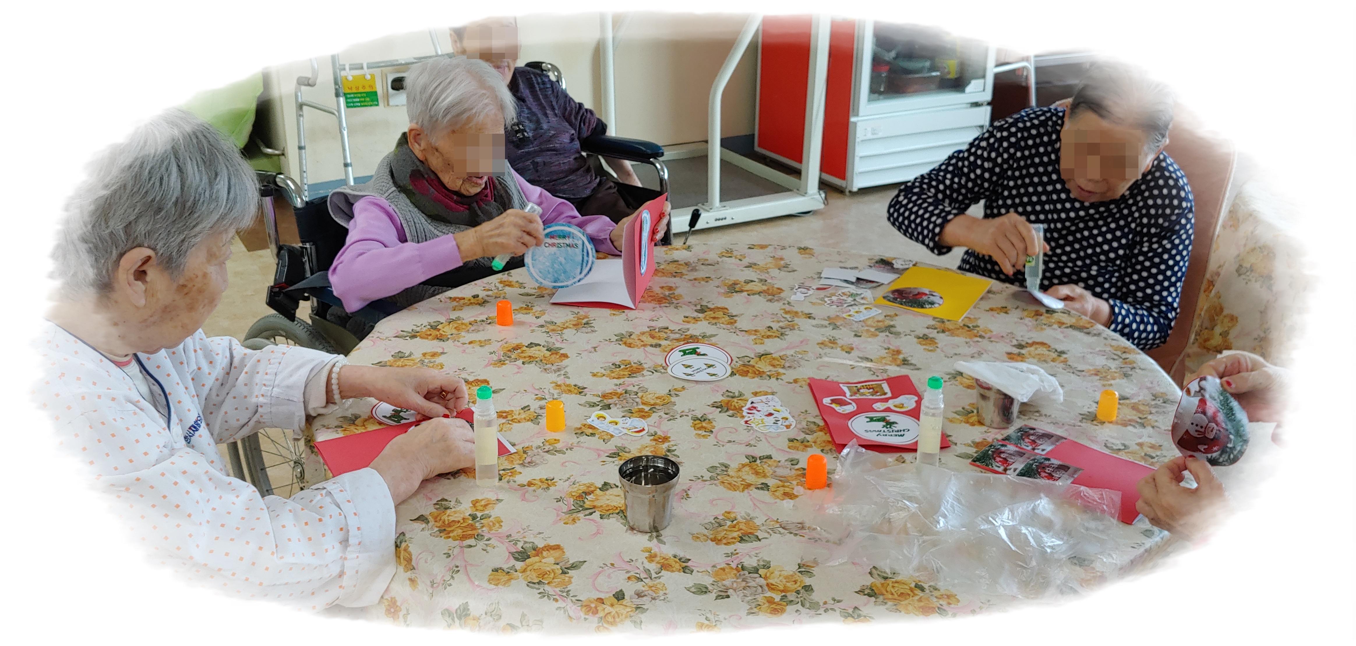 5병동 어르신들과 크리스마스 카드 만들기를 해보았습니다.