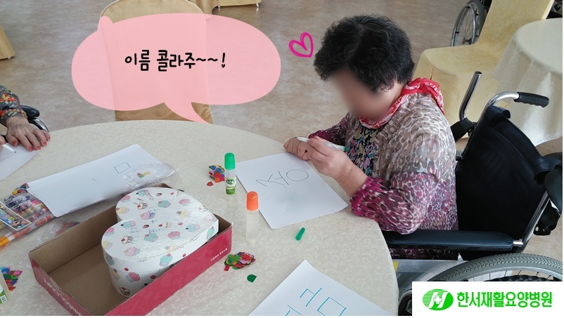 자기 이름을 직접 이쁘게 색종이로 붙이는