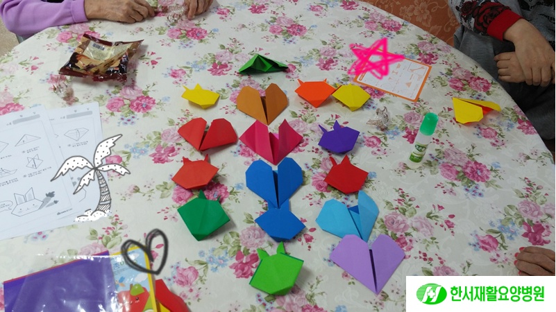 오늘은 어르신들과 종이접기를 하였습니다.~~~