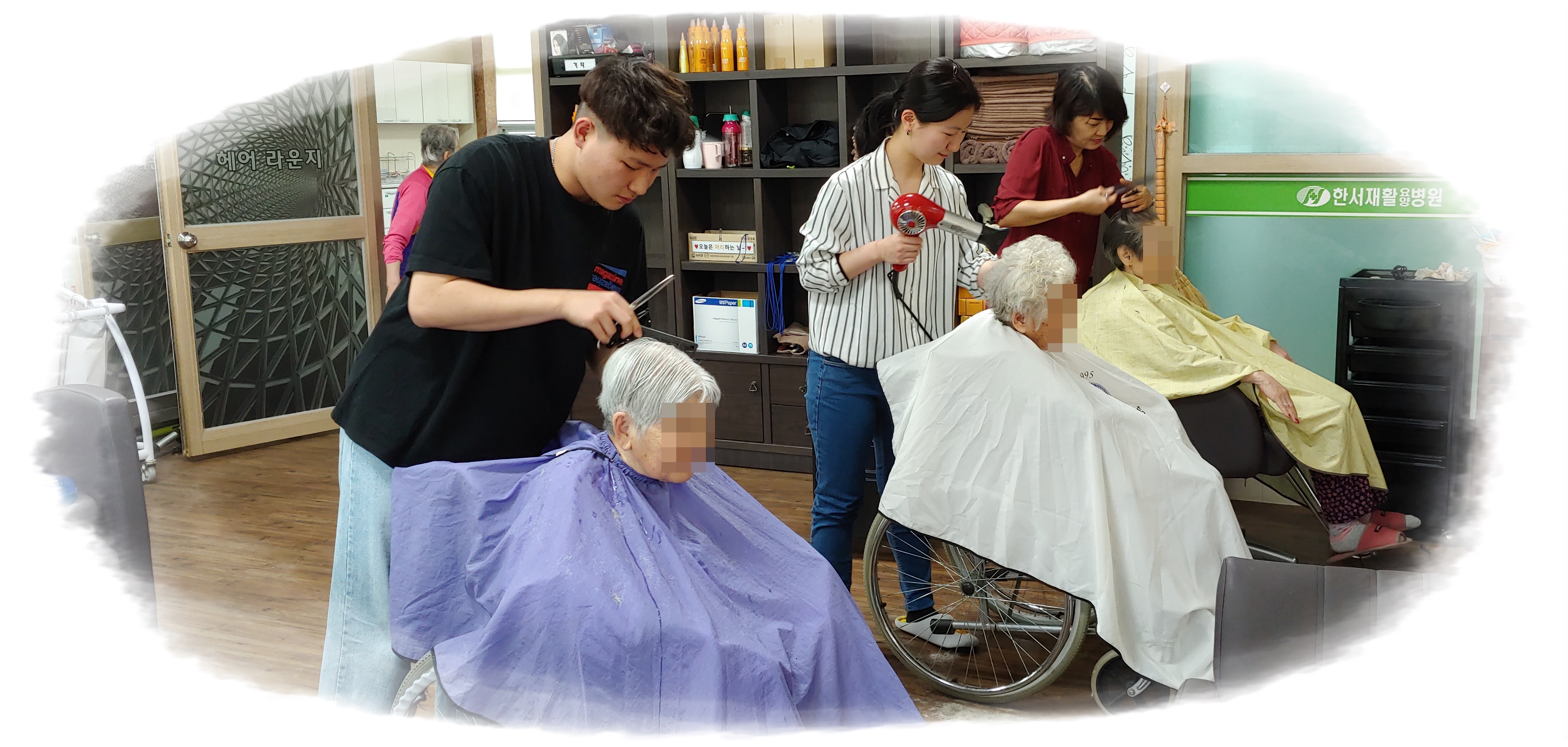 교수님과 학생들이 한서 어르신들의 미용을 위해 방문해 주셨습니다.
