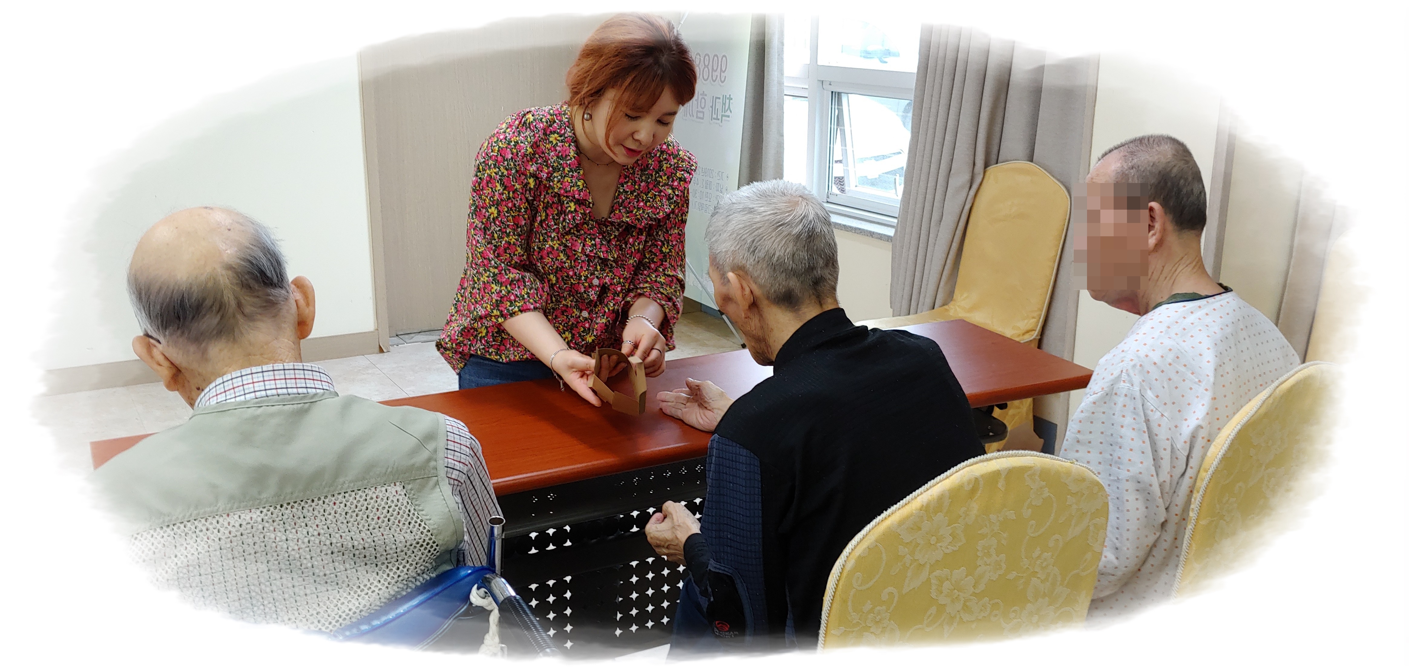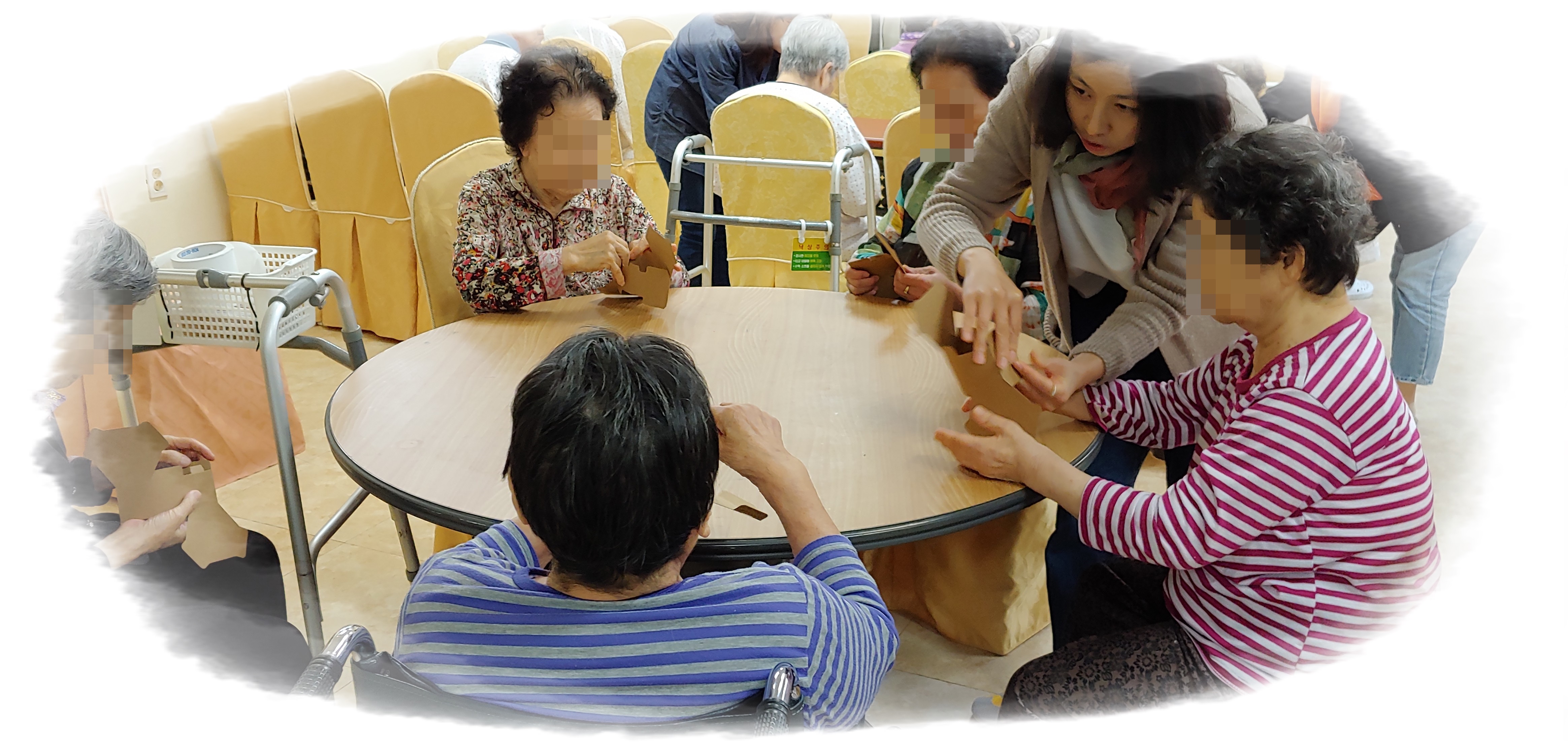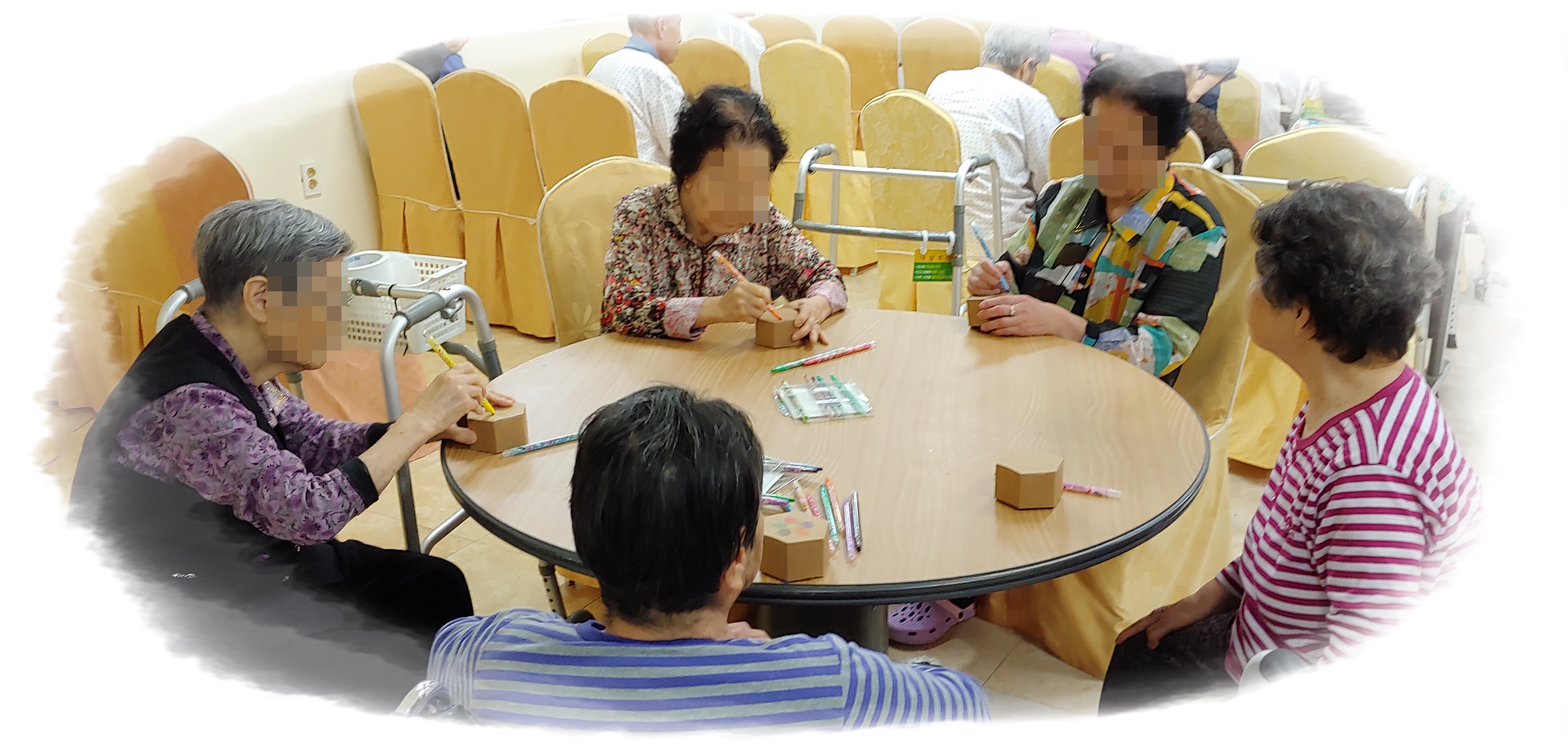 어르신들의 상자 접기와 그림으로 꾸미기 활동을 도와 주셨구요.