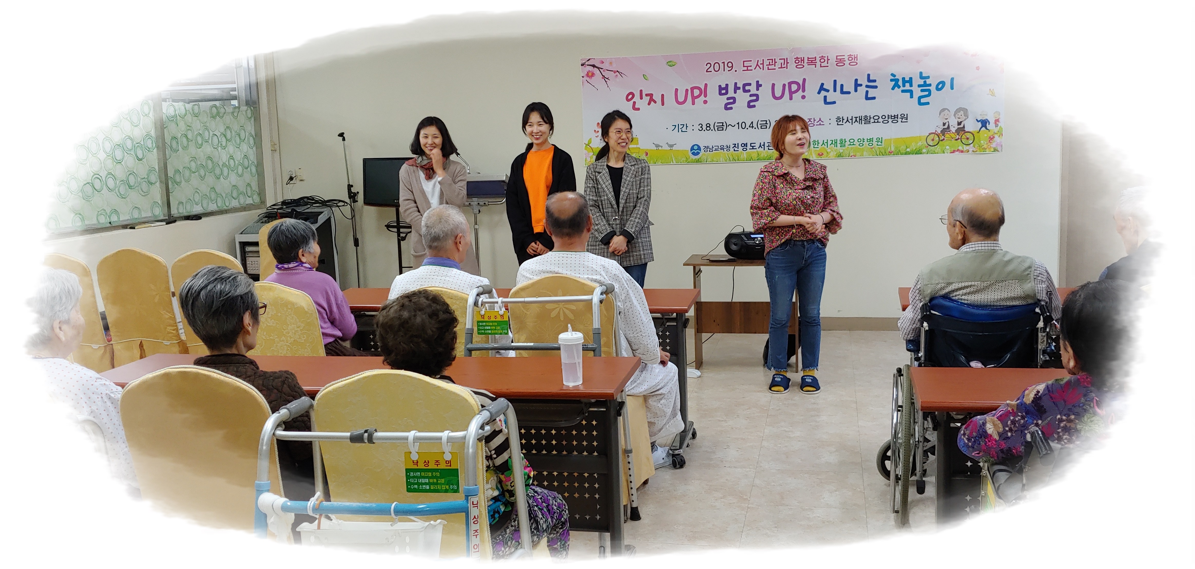 우리 어르신들의 활동을 도와줄 자원봉사자님들이 오셔서