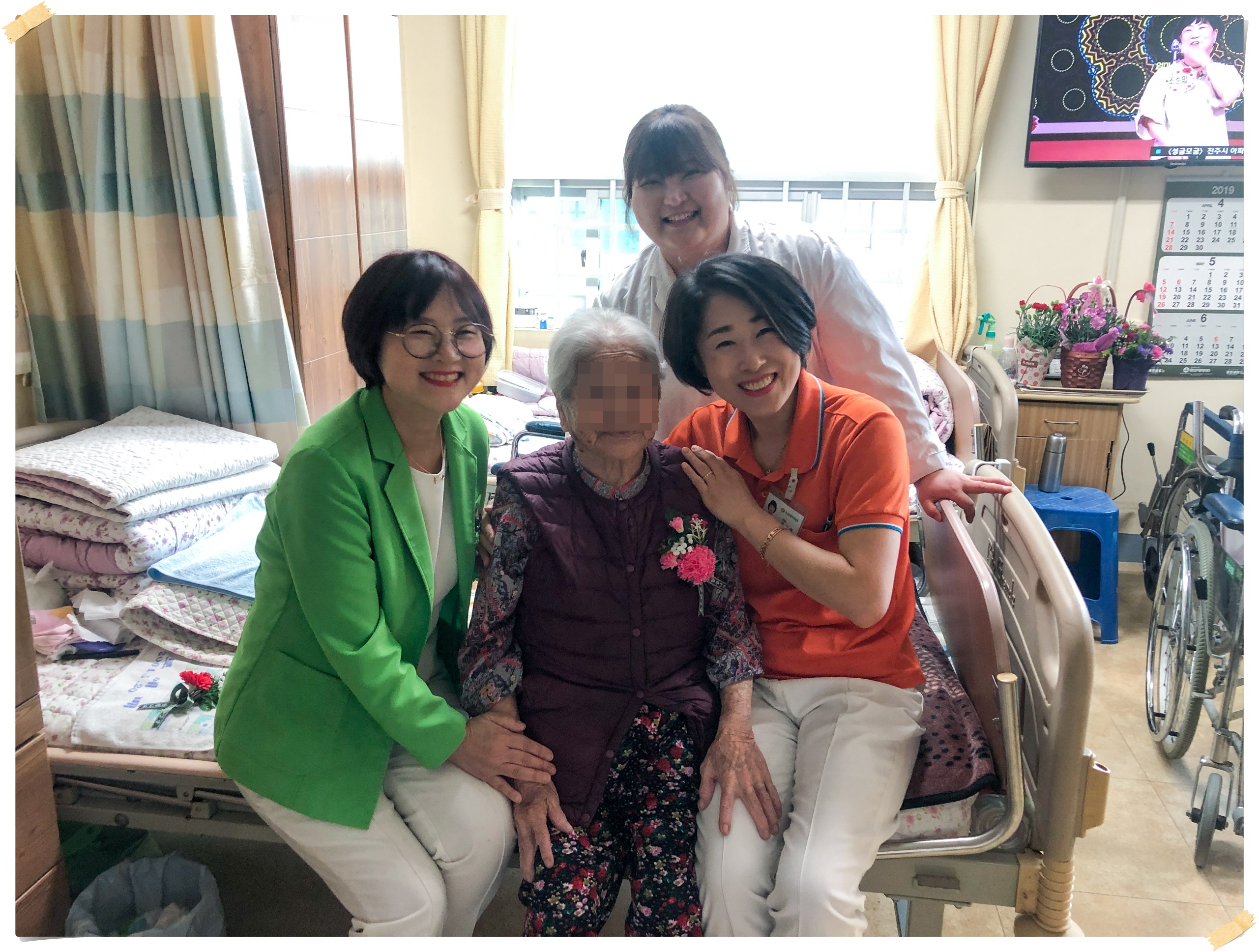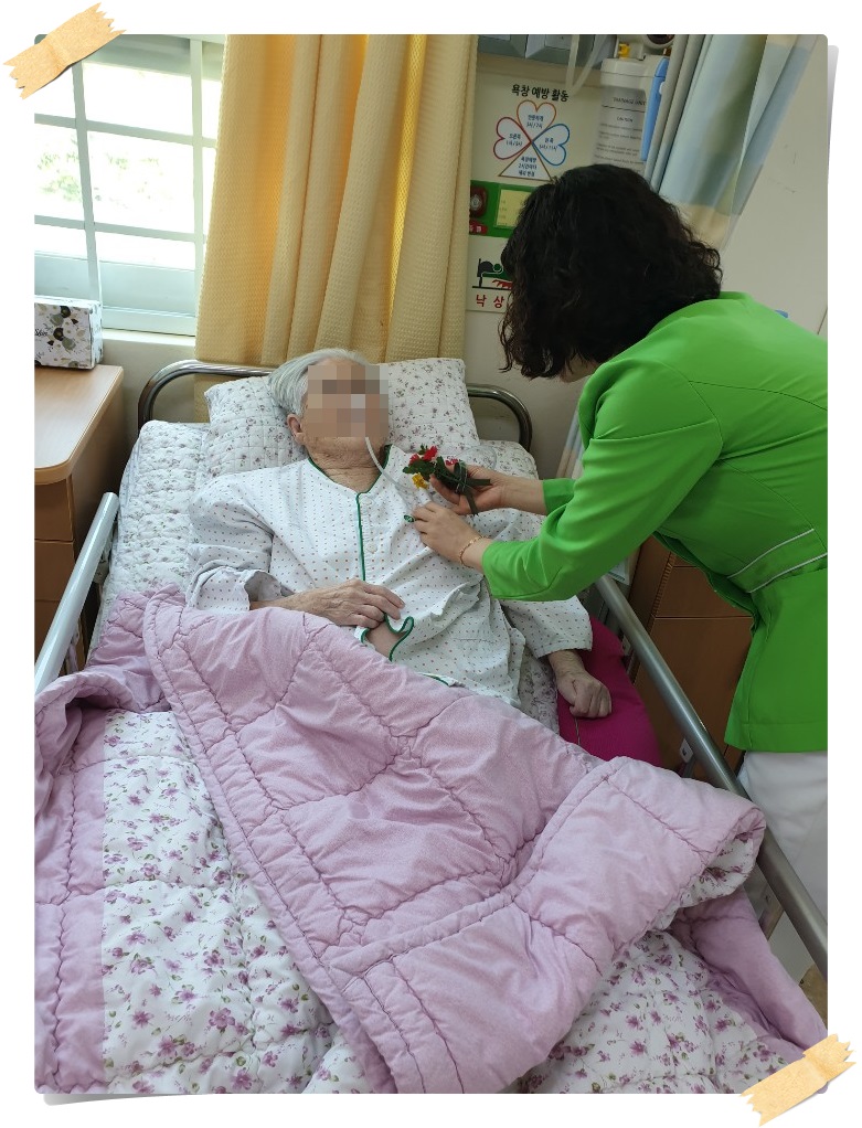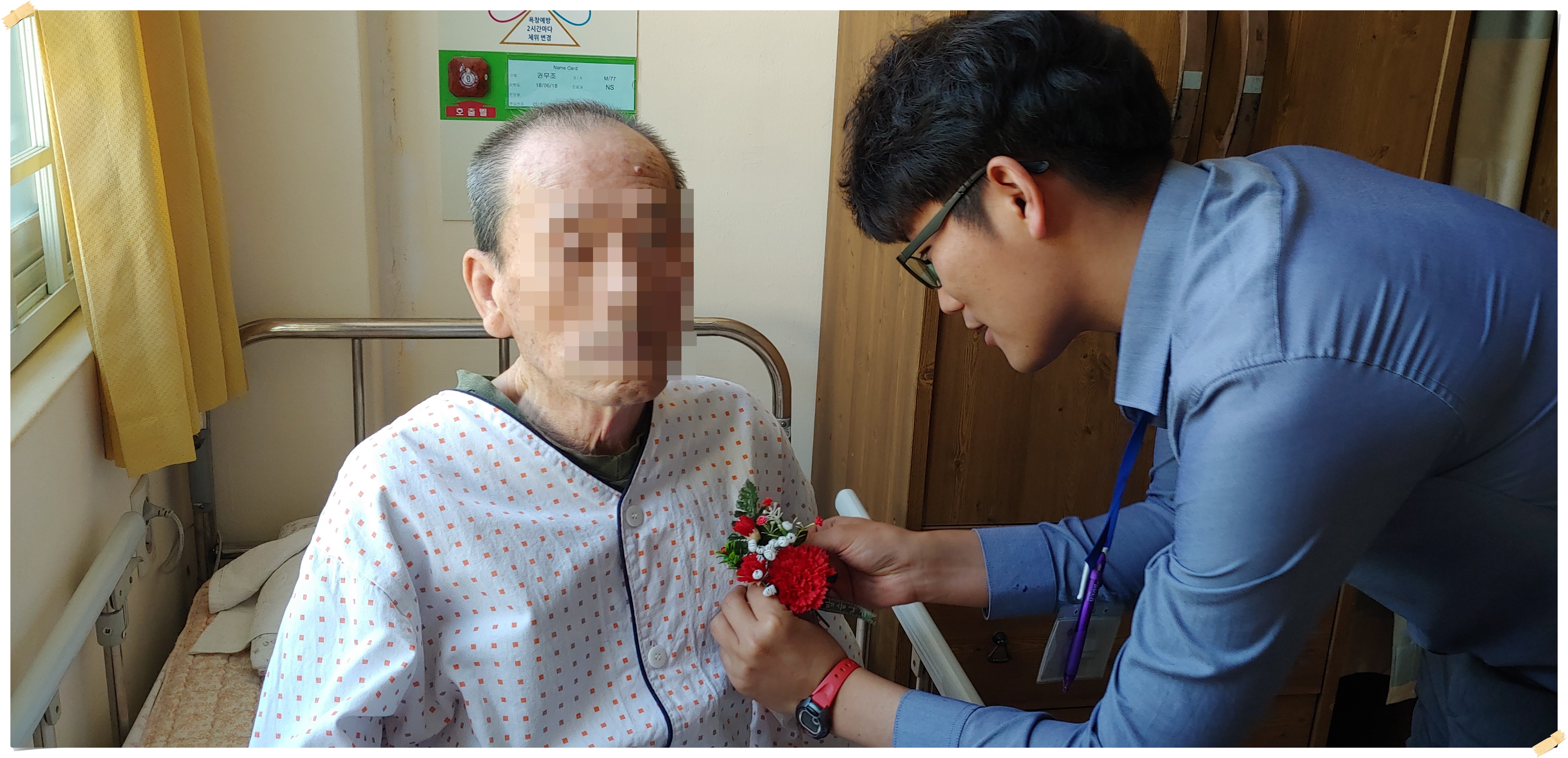 한서 가족 모두가 어르신들께 카네이션을 달아드렸습니다.