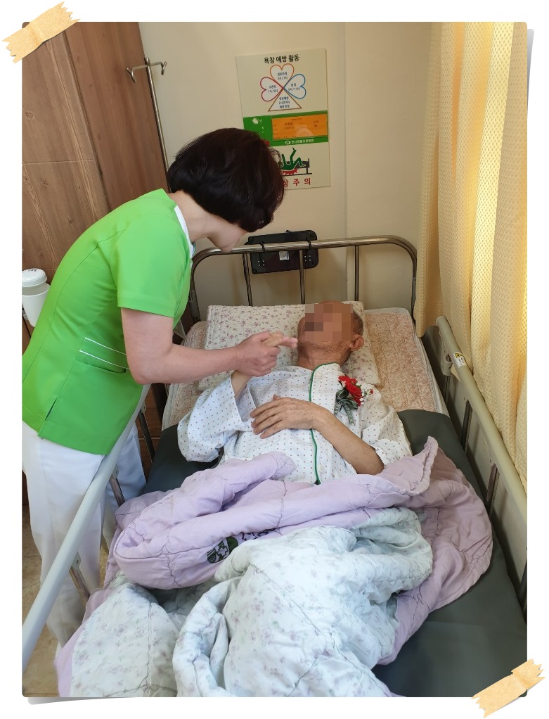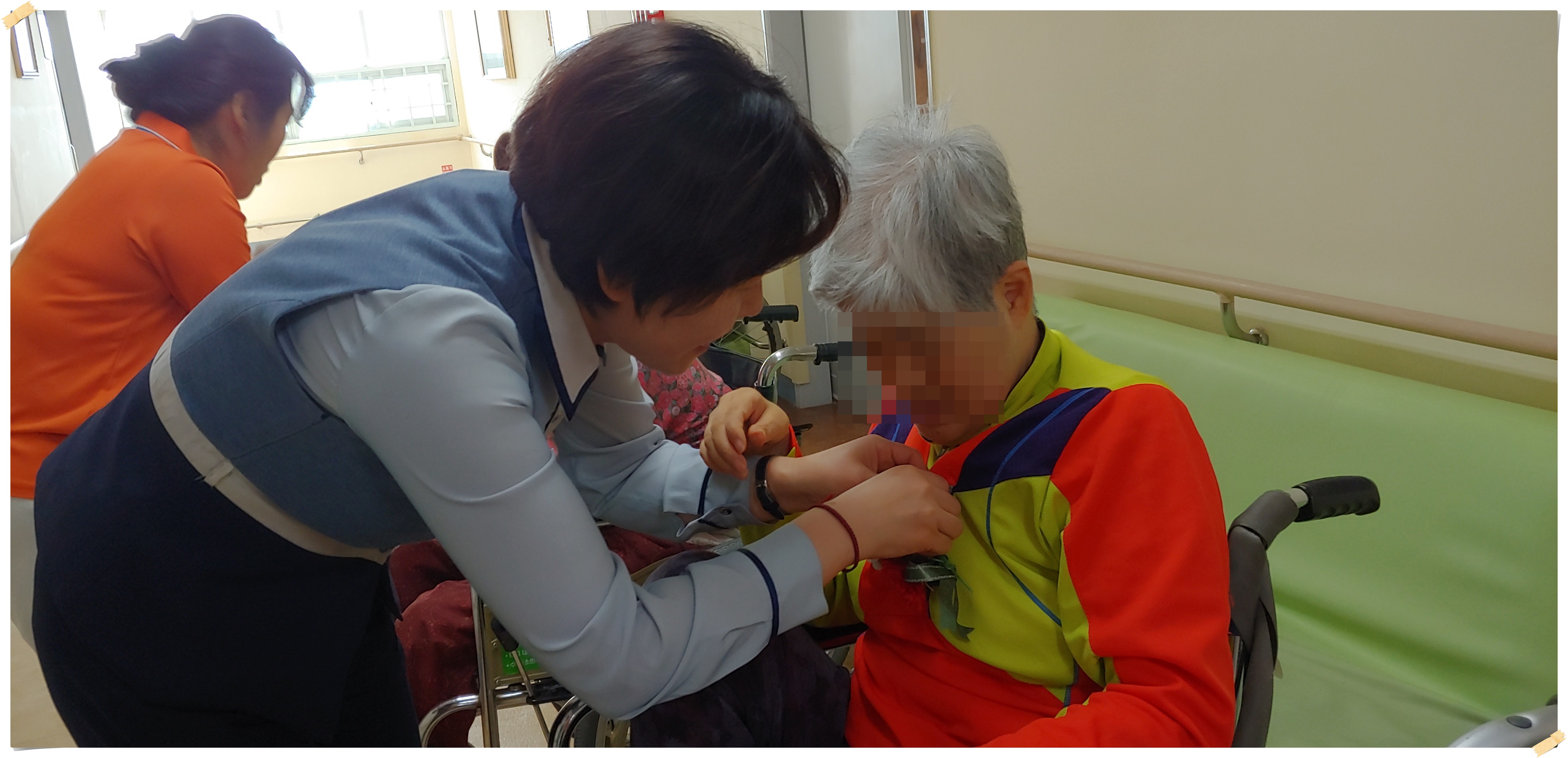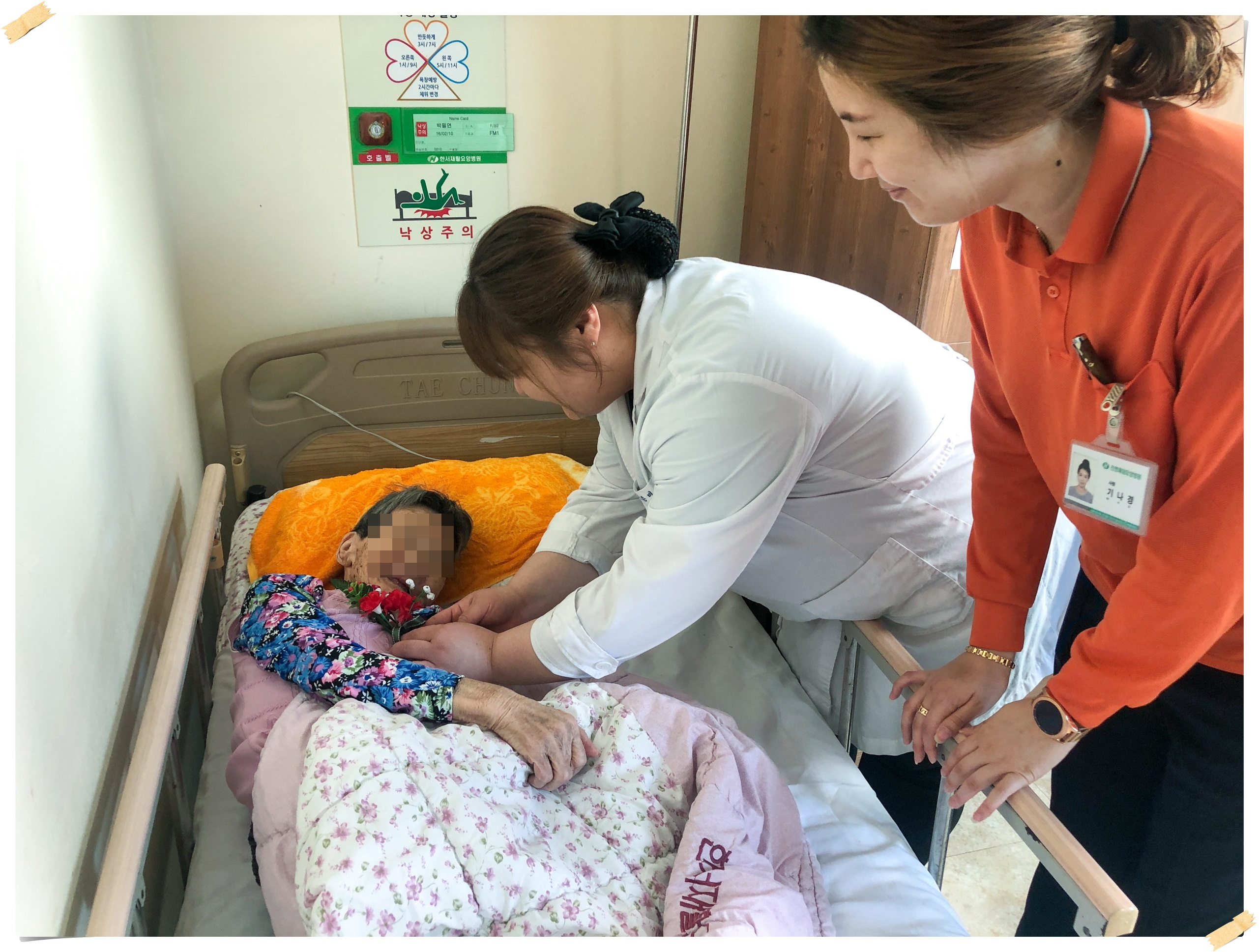 한서 가족 모두가 어르신들께 카네이션을 달아드렸습니다.