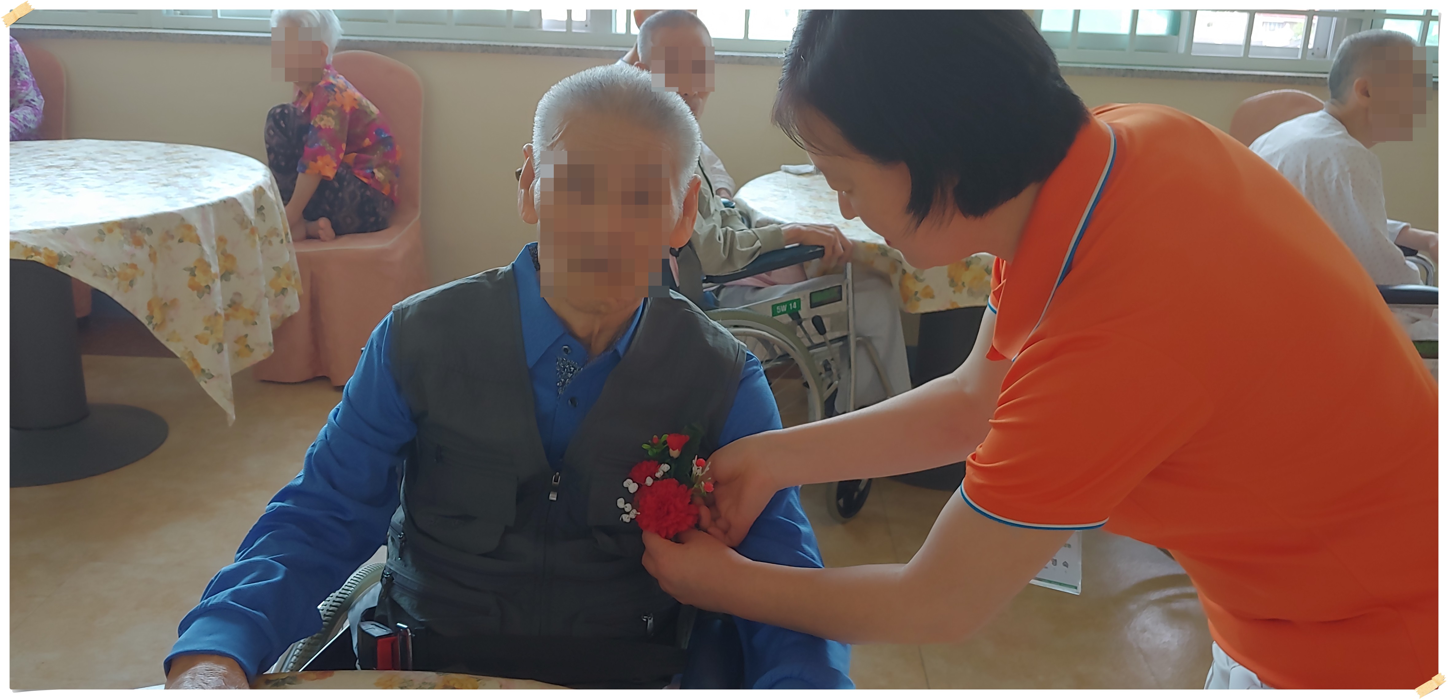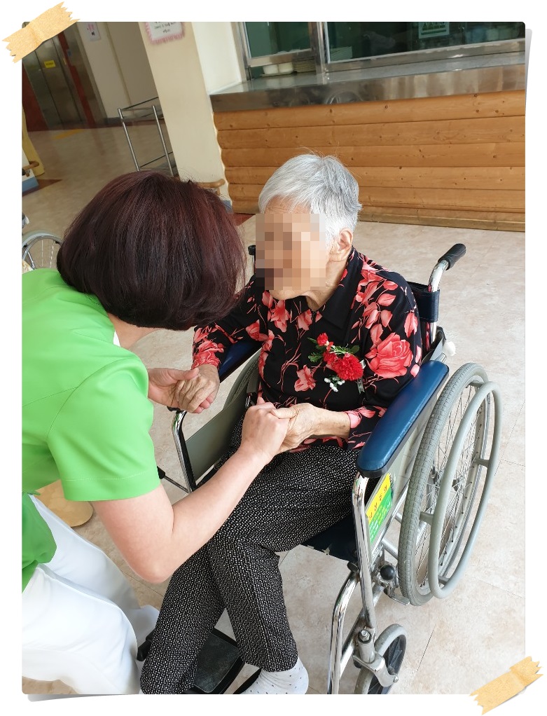 카네이션을 가슴에 달고 기뻐하시는 어르신도 계시고