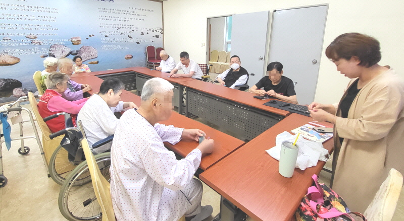 한빛도서관 구연동화 선생님이 방문하여 어르신들과