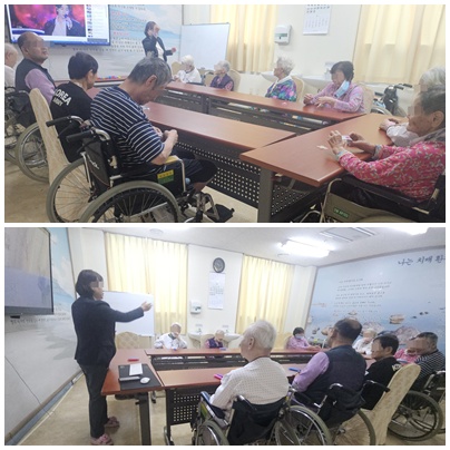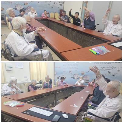 어르신들과 함께 즐겁게 노래도 부르고 손유희 활동도 하였습니다.