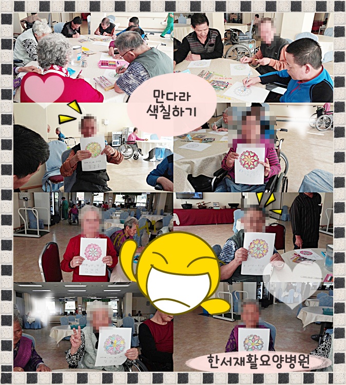 색칠하기 시작하더니 모두 뿌듯한얼굴로