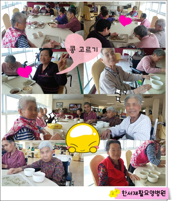 오후에는 콩 고르기 프로그램을 하였습니다.