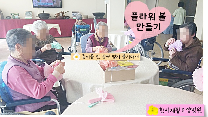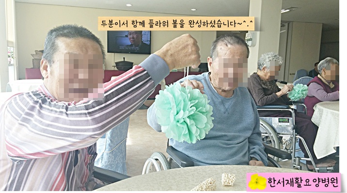 어르신들 모두 완성된 플라워 볼에 대해 만족하셨고!