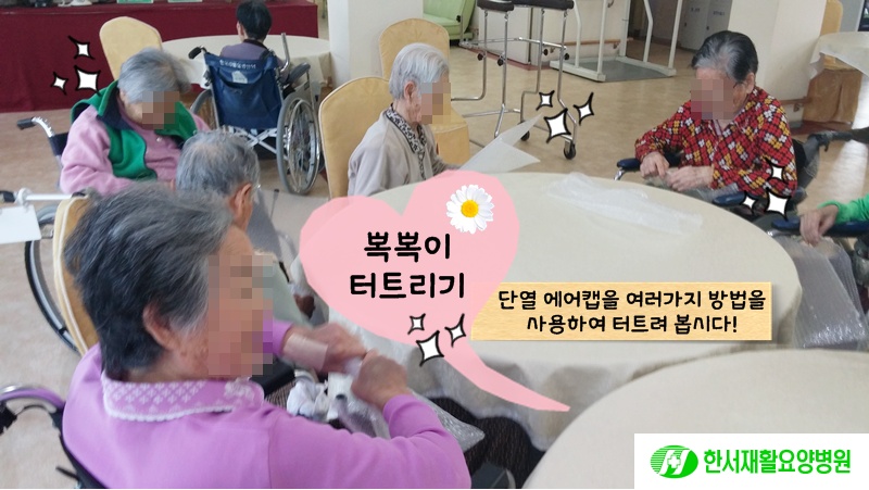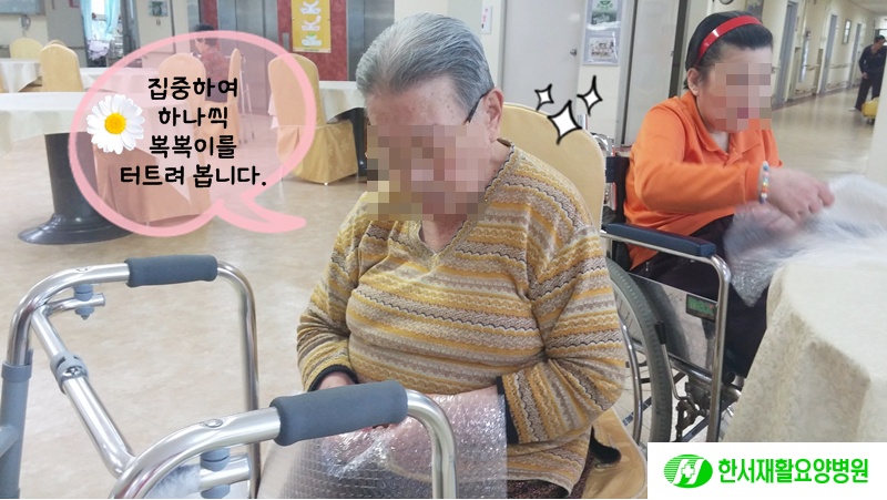 어르신들이 좋아하시는 '뽁뽁이 터트리기'활동을