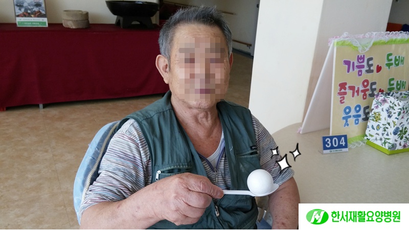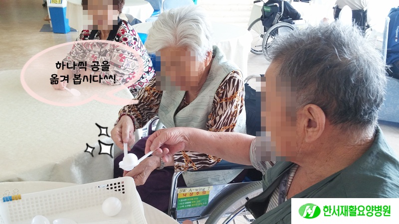오늘 오전에는 '숟가락 공놀이'프로그램을