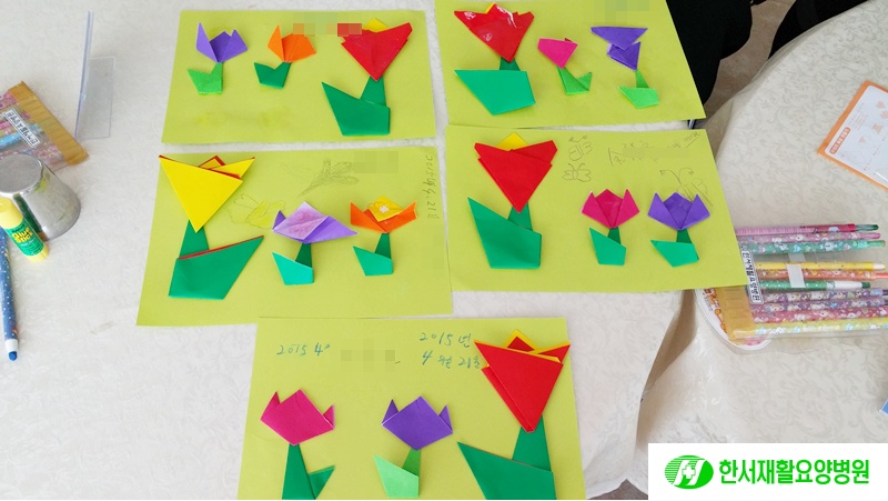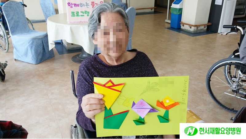 오늘 오전에는 색종이 접기 프로그램을 했습니다~!