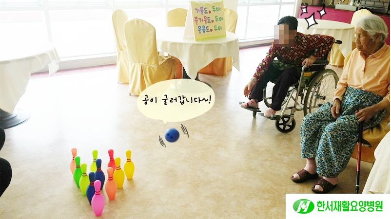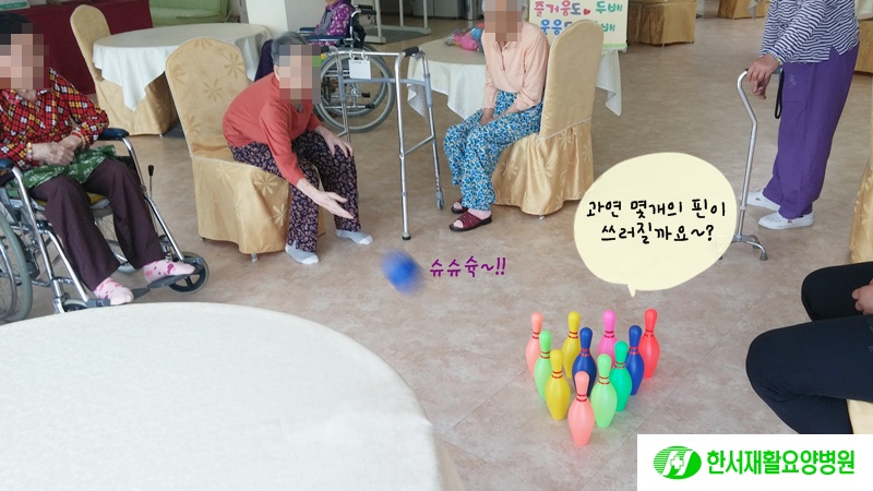 오늘은 '볼링 공놀이'프로그램을 진행하였습니다~!