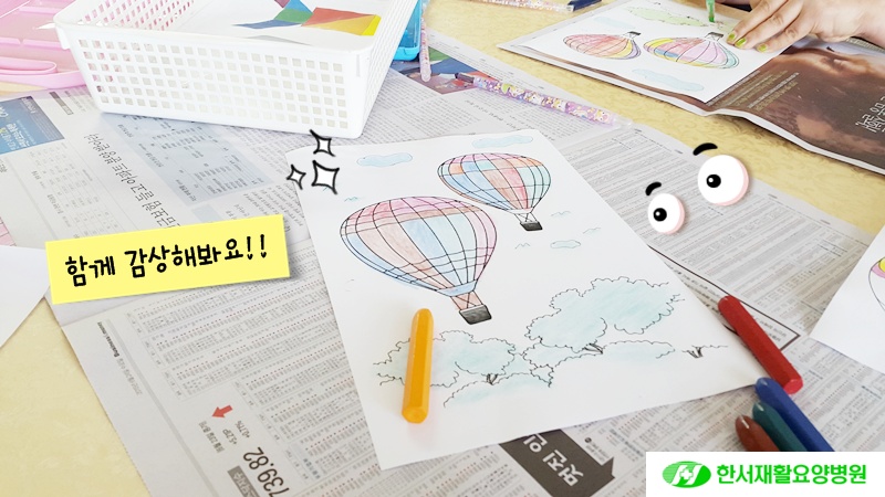 오전에는 '열기구 색칠하기' 프로그램을 진행하였습니다.