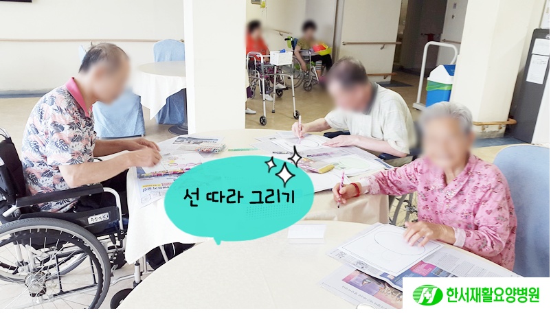 어르신들이 오손도손 모여 선 따라 그리시는데
