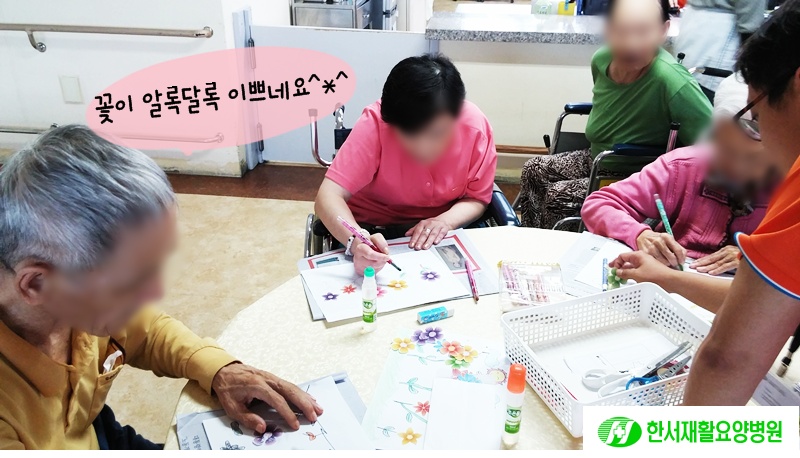 알록달록 꽃종이를 오려 붙이고 색을 입히는 미술홛동 이었습니다.